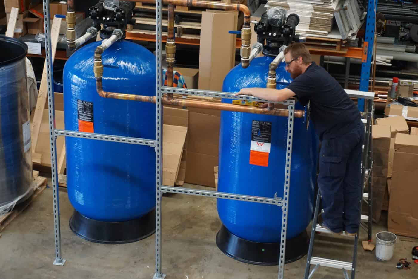 Custom Water Softener Plants being built in Aquacure’s workshop, Brisbane Australia.